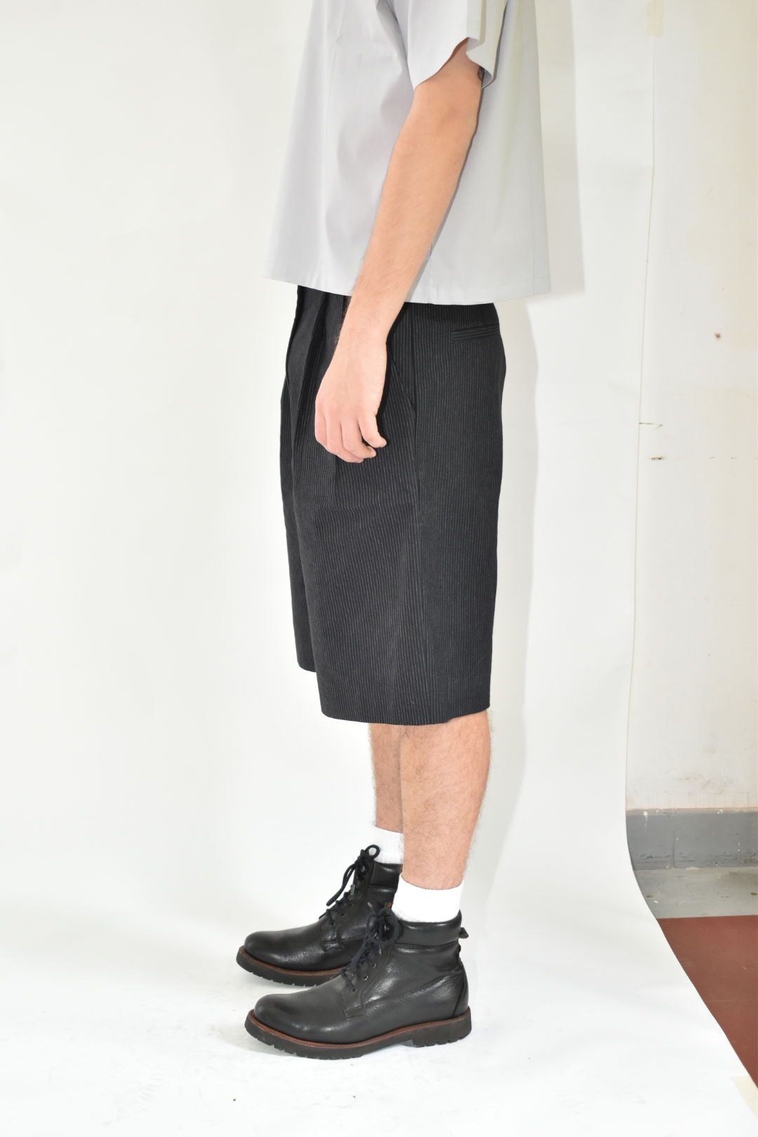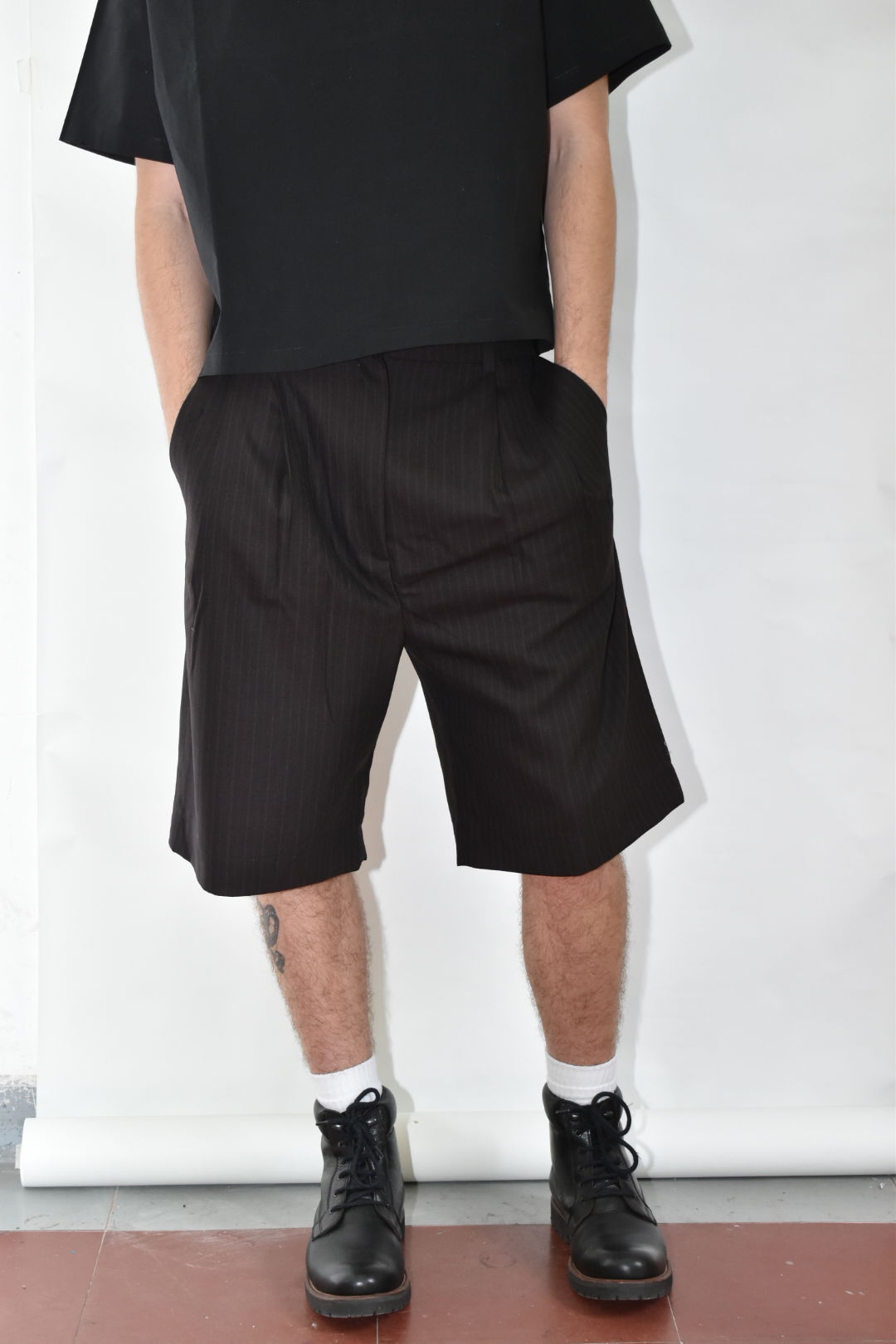 Bermuda sastrera. Con cintura media y silueta amplia. Bolsillos laterales y bolsillo ojal trasero. Prenda unisex.