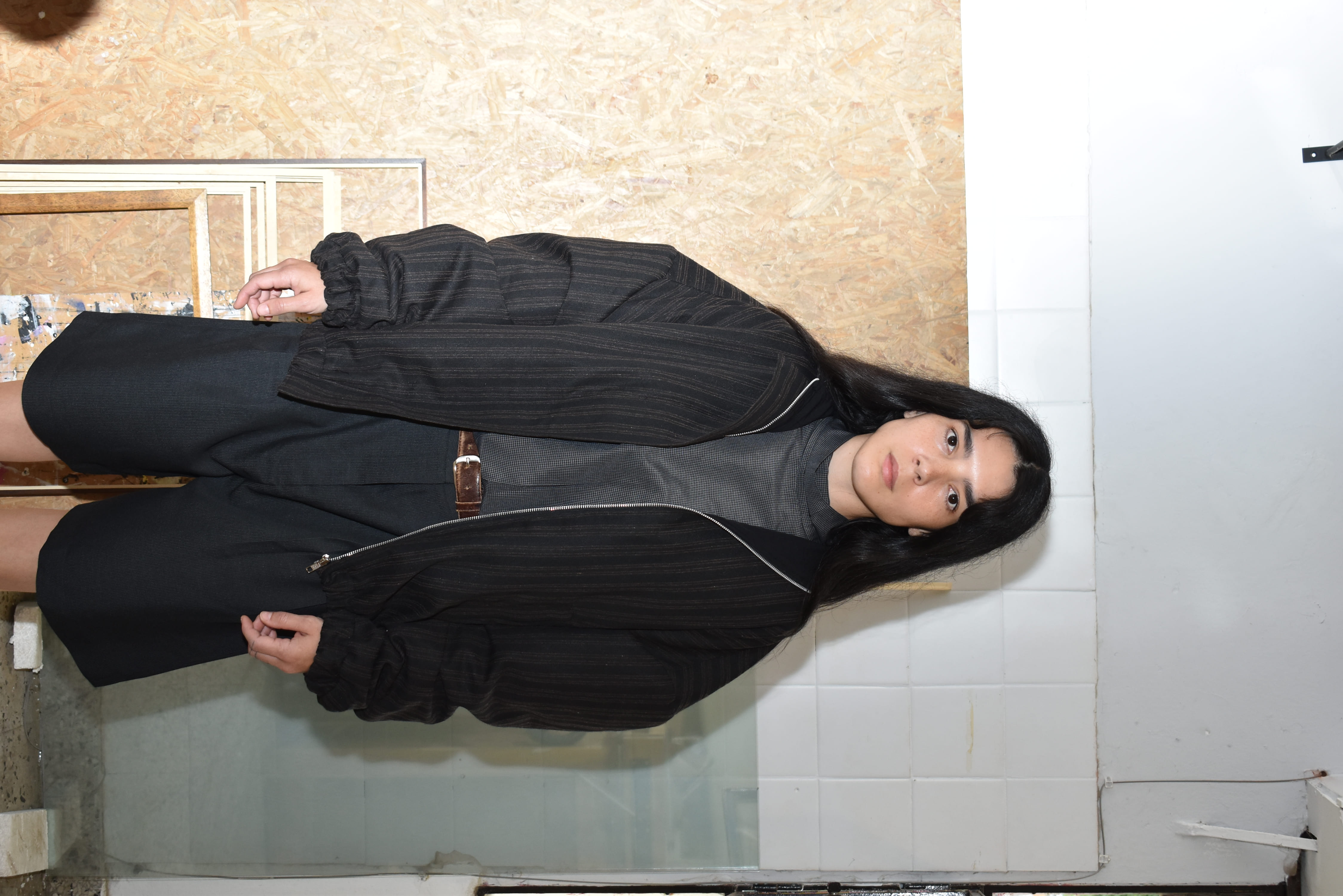 Campera de telas sastreras, bolsillo ojal en interior y exterior, cierre metálico. Puños y cintura con elástico. Forrería de poplin de algodón. Silueta bombé permite libertad de movimiento y adaptación a diferentes cuerpos. Prenda unisex.