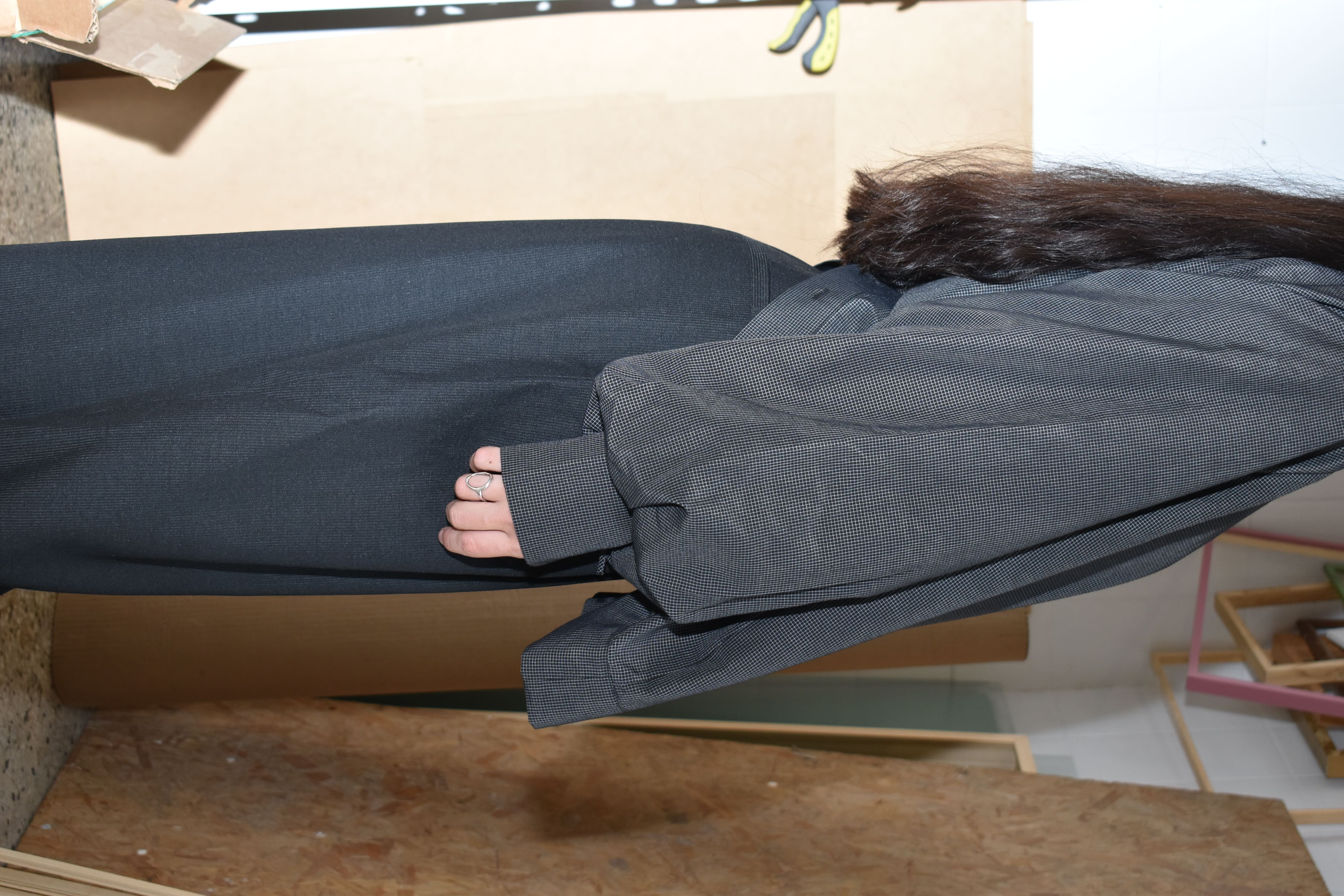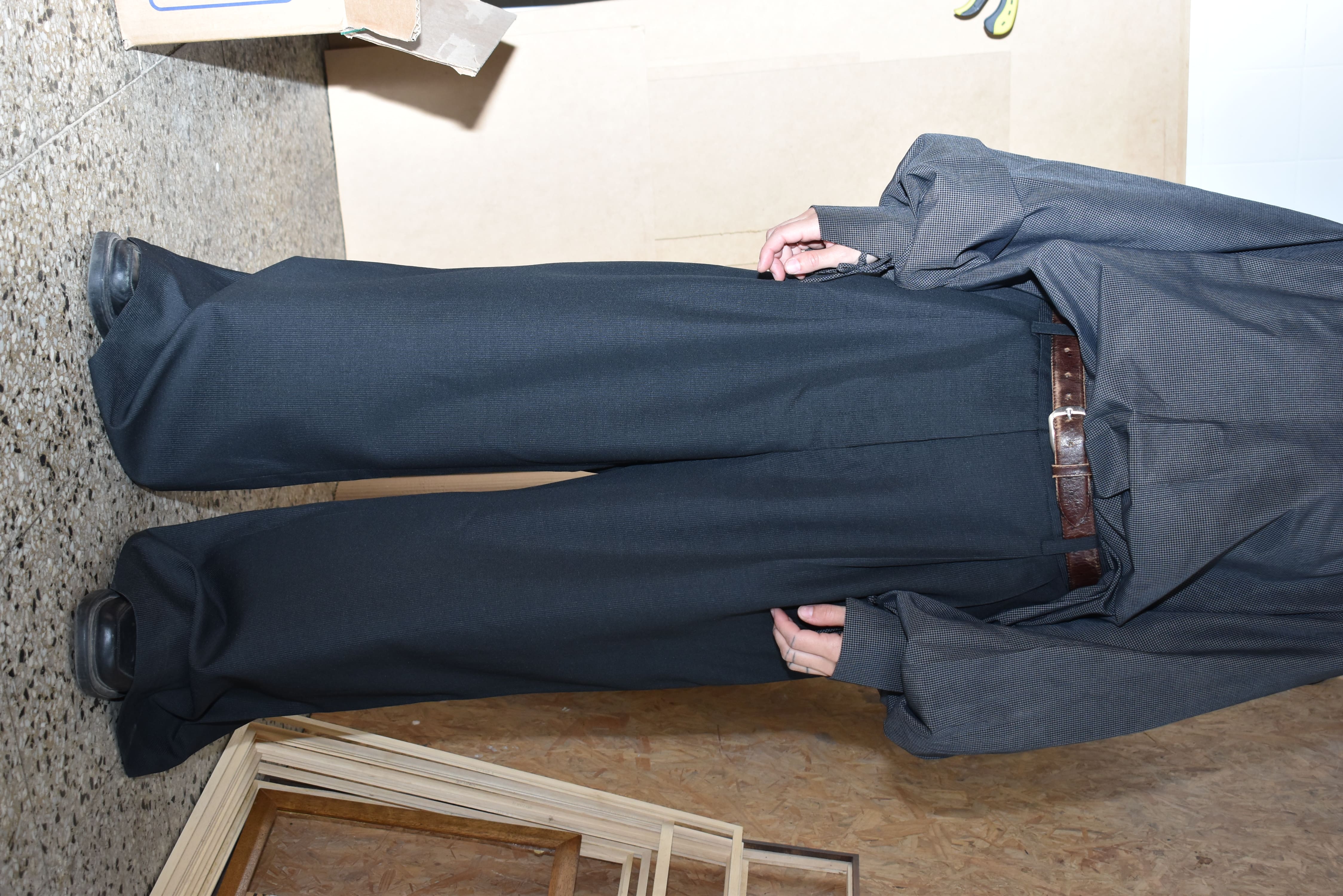 Pantalón sastrero. Con cintura media y silueta amplia. Bolsillos laterales y bolsillo ojal trasero. Prenda unisex.
